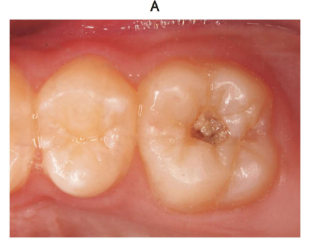 う蝕症第2 度と診断され、メタルインレー修復を行うことになった。使用する印象材の写真(別冊午後No.46)を別に示す。