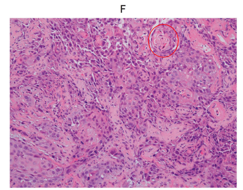 口腔内写真(別冊午後No.36)を別に示す。丸で囲んだ部分は患部を示す。