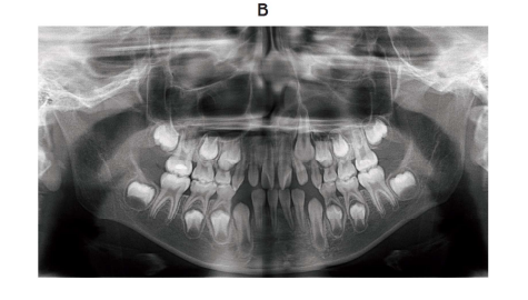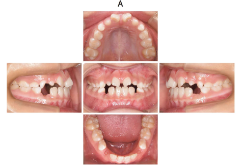 9 歳の女児。前歯の歯並びが悪いことを主訴として来院した。初診時の口腔内写真(別冊No. 18A)とエックス線画像(別冊No. 18B)を別に示す。