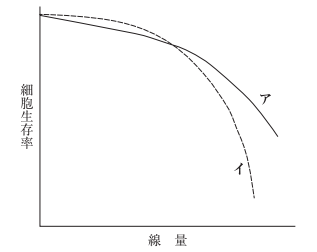 ア:早期反応組織:放射線被爆後、比較的短期間で症状が現れる、粘膜、骨髄、生殖器、皮膚など