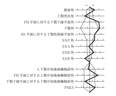 矯正歯科診断時の評価に用いる側貌写真(別冊午前No.43) を別に示す。