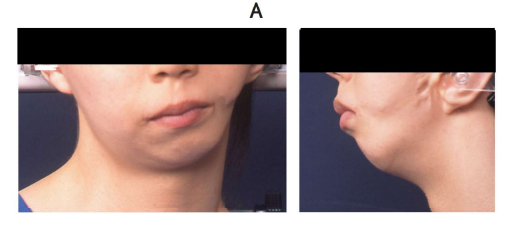 ③:過蓋咬合ならばオトガイ唇溝のくびれが弱かったりオトガイ筋が緊張してしわができたりする。