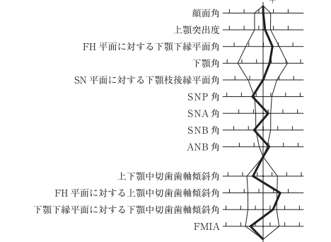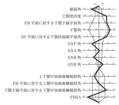 矯正歯科診断時の評価に用いる側貌写真(別冊午前No.43) を別に示す。