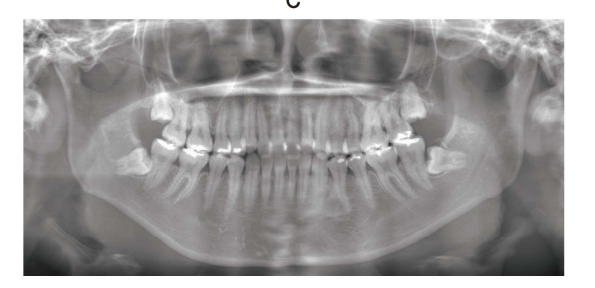 c 上顎右側中切歯は舌側傾斜。左の写真より。